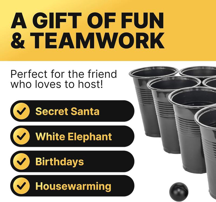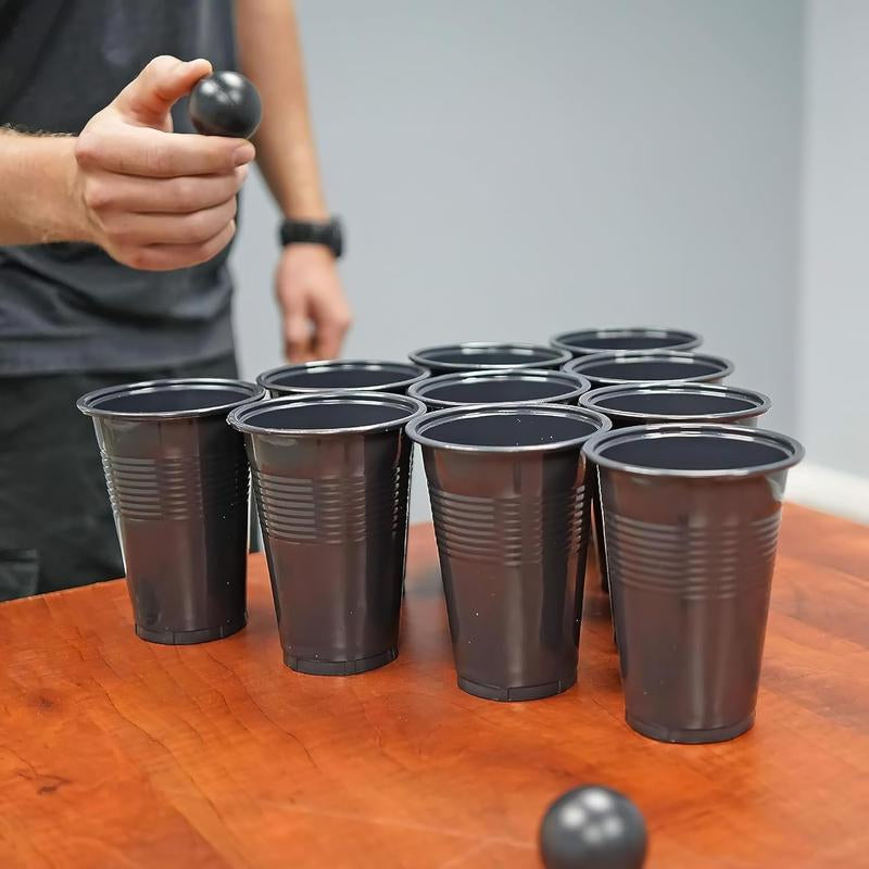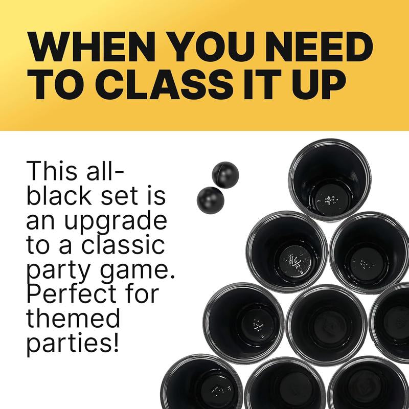 In today's competitive party game market, traditional red cups are outdated. This all-black beer pong set delivers sophisticated elegance with serious gameplay performance. Unlike basic disposable cups, these durable 16oz plastic cups withstand intense tournament-style play with superior durability and sleek aesthetics that photograph beautifully for social media.