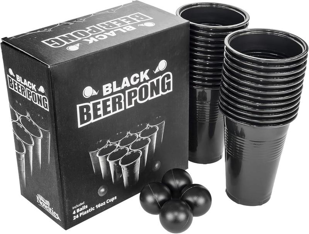 Black Beer Pong Set | 24 Cups & 4 Balls | Party Game