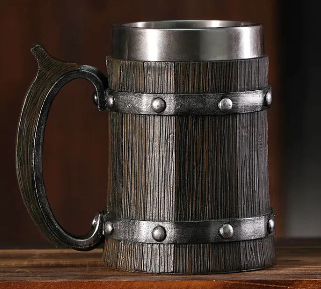 Material Excellence: Crafted from quality resin and stainless steel, this wooden barrel mug features food-safe construction that withstands regular use and dishwashing.